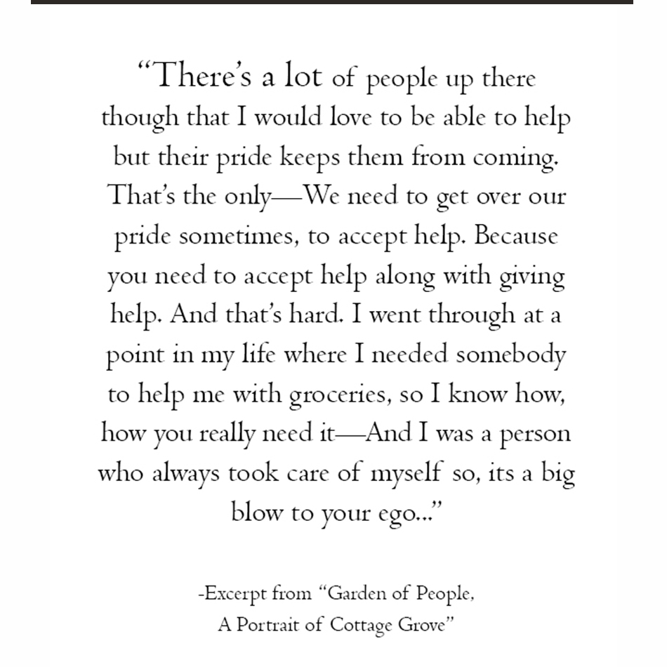 "Garden of People: A Portrait of Cottage Grove" is an art project and published book designed to explore culture and society.