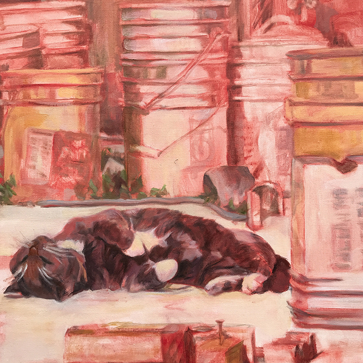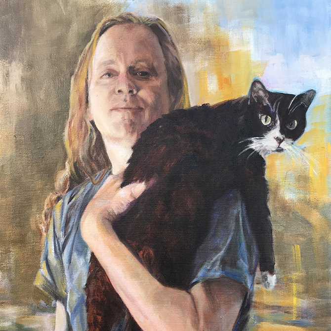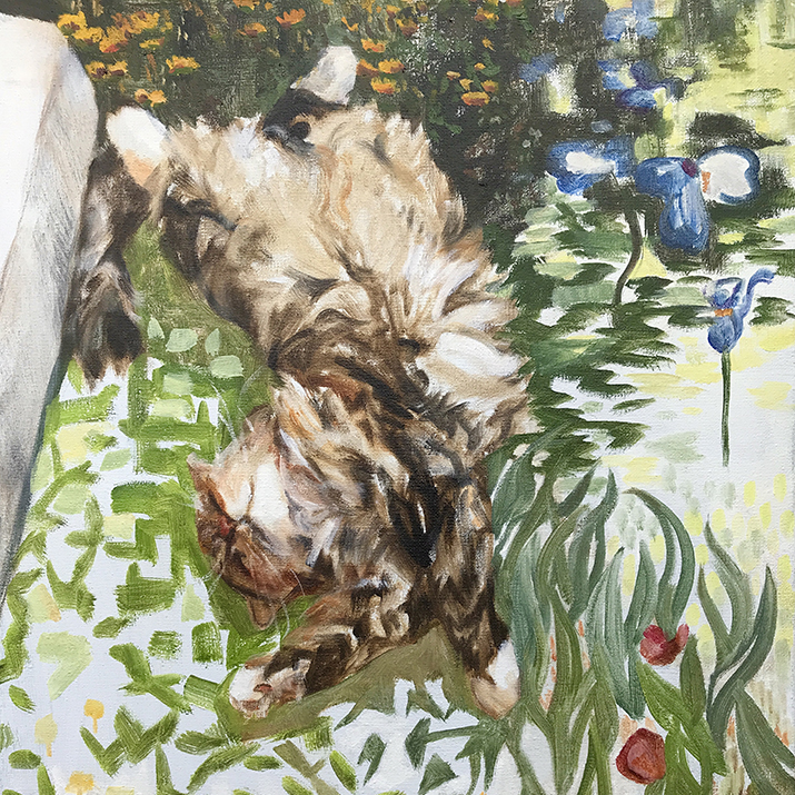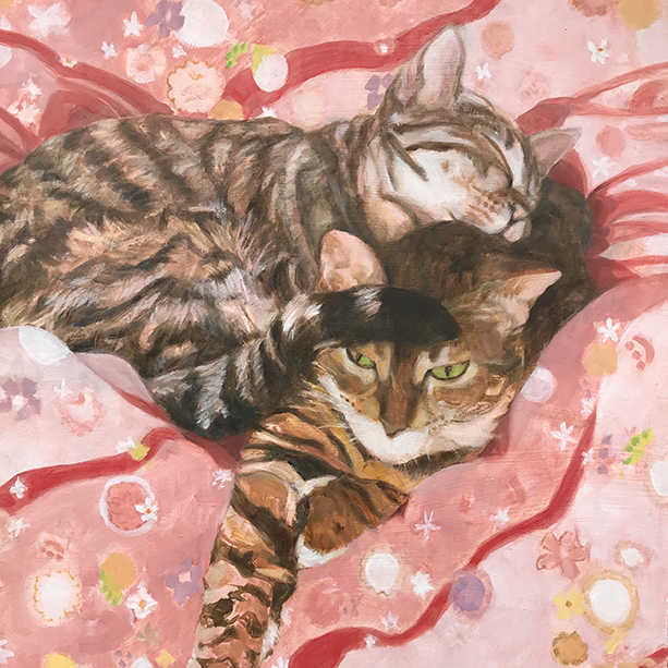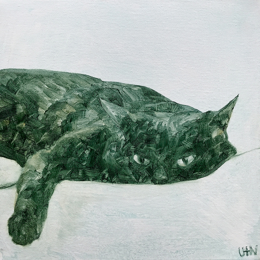 Inspired by cats and songs by The Cure, these paintings derive from personal experience and photos shared by friends and art enthusiasts. It is a joy to paint and spend time with cats and show their different personalities and relationships with people. Each painting has a story and celebrates this feline furry friend!
